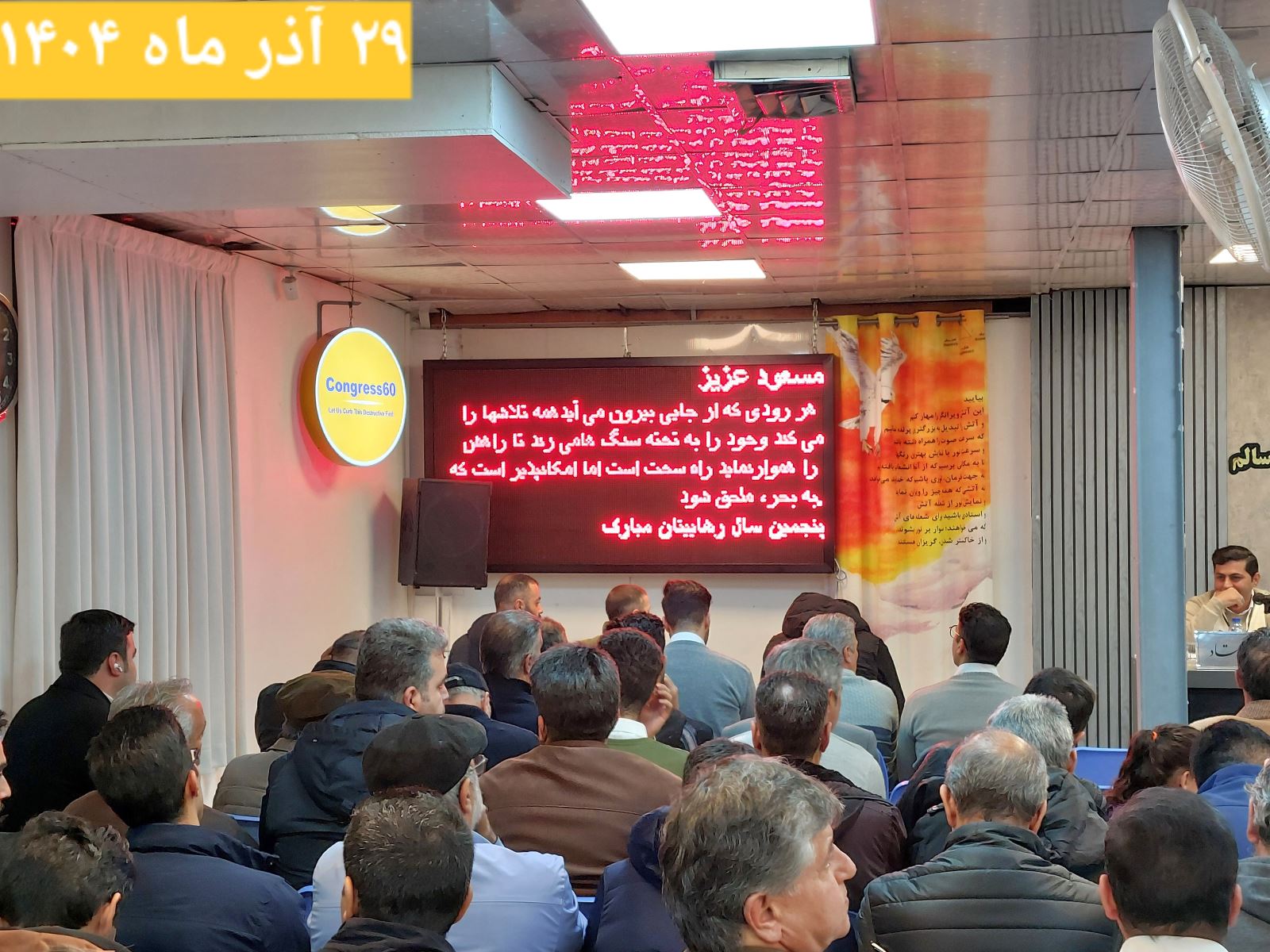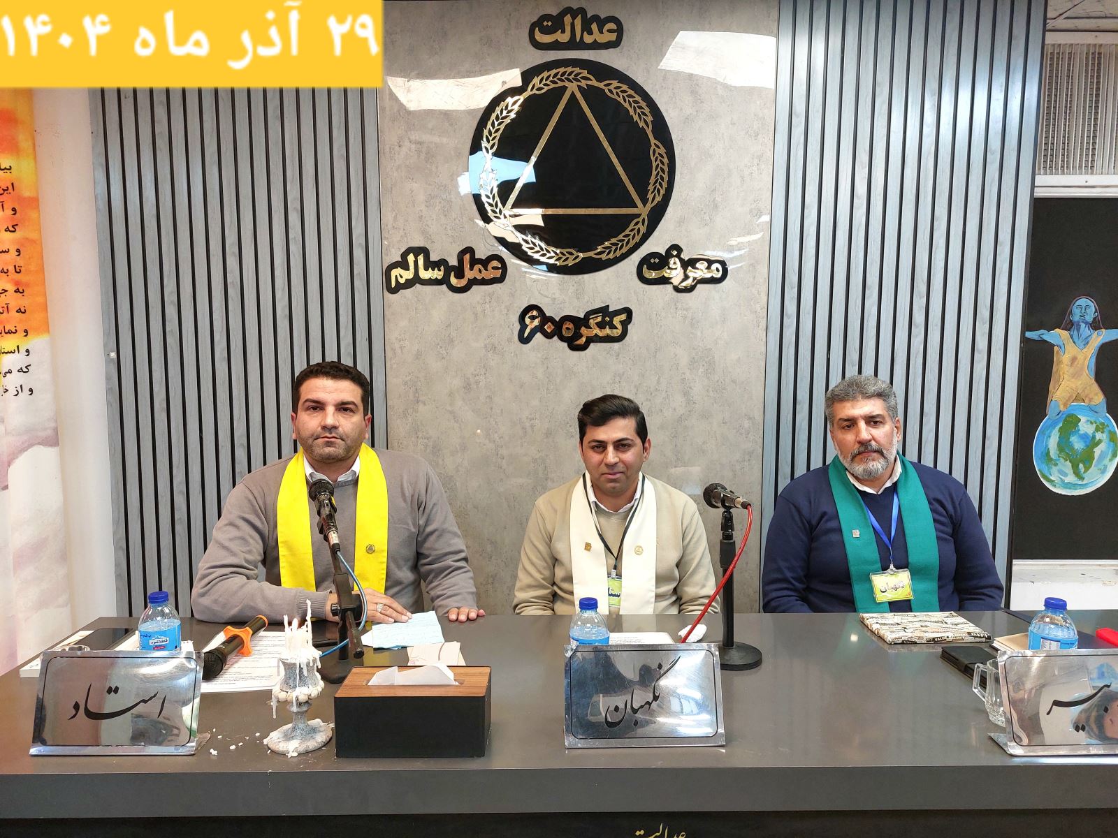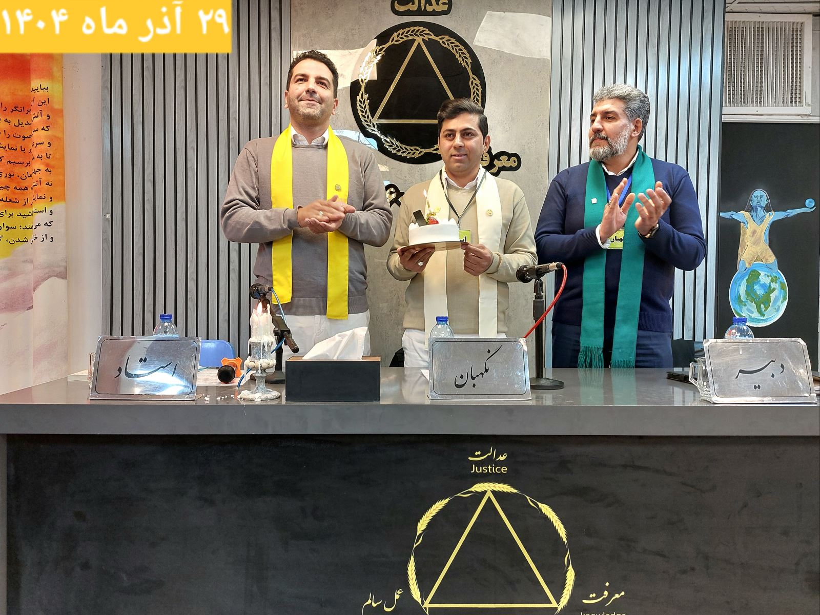 جلسه دوازدهم از دوره چهل و پنجم کارگاههای آموزشی کنگرۀ ۶۰ نمایندگی ارتش، با استادی ایجنت محترم مسافر مهدی، نگهبانی مسافر احمد و دبیری مسافر علیرضا، با دستور جلسه "وادی یازدهم و تاثیر آن روی من" و در ادامه جشن آزاد مردی پنجمین سال رهایی مرزبان محترم مسافر مسعود در روز شنبه ۲۹ آذر ماه ۱۴۰۴ ساعت ۱۷:۰۰ آغاز به کار نمود.