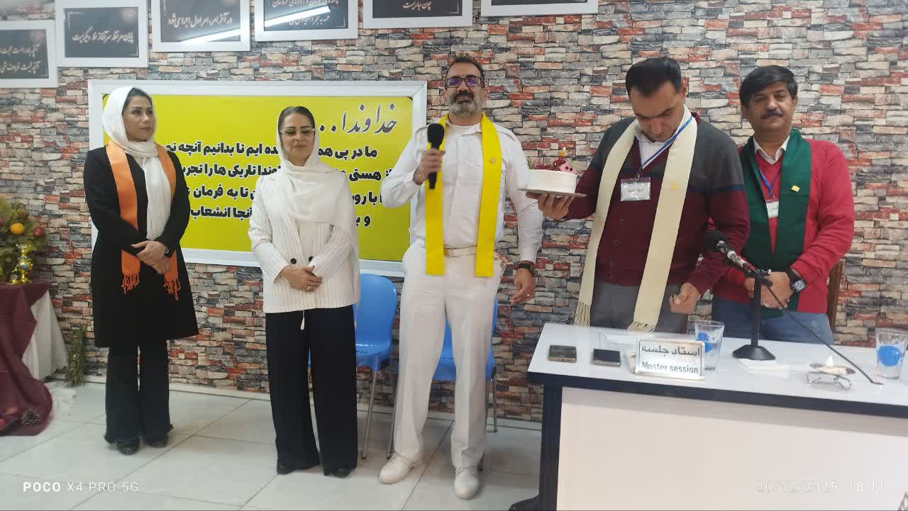 این لحظه زیبا را در راس به جناب مهندس تبریک می گویم و تبریک دوم را به راهنمای مسافرمی گویم که برای رساندن مسافر به حال خوب زحمات زیادی متقبل می شود، همچنین به آقا نوید تبریک می گویم که یکی از خدمتگزاران خوب کنگره هستند و تولد ها برای این است که مسافرینی که تازه وارد هستند ببینند که اگر درست حرکت کنند به آن آرامش و رهایی و حال خوب می رسند و تبریک می گویم به راهنمای خودم که با حمایت ایشان در این جایگاه هستم و تبریک میگویم به رهجویم که از بهترین رهجوهای من بودند و در مسیر بودند ضمن فرمان برداری و خوش رویی و مسئولیت پذیری که داشتند، امیدوارم در ادامه همچنان پر قدرت در این مسیر باشند و امیدوارم در تمام مسیر زندگی موقف باشید .