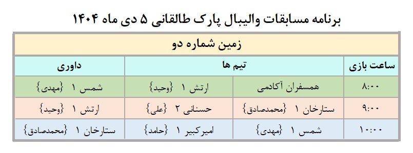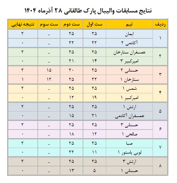 شورای ورزشی نتایج حذفی دور رفت مرحله یک شانزدهم نهایی و برنامه دور برگشت مرحله یک شانزدهم نهایی دیدارهای هفدهمین دوره جام عقاب طلائی والیبال پارک طالقانی منبع: پارک طالقانی(تهران) دوشنبه 1 دي 1404 تعداد بازدید از این مطلب : 193 نتایج حذفی (دور رفت مرحله یک شانزدهم نهایی) برنامه دور برگشت مرحله یک شانزدهم نهایی منبع: پارک طالقانی(تهران) دوشنبه 1 دي 1404 تعداد بازدید از این مطلب : 193 ویژه ها هشدار نایدا: وقفه در بروزرسانی و ارائه برخی از خدمات به دلیل وقفه در تأمین بودجۀ دولتی امریکا پذیرش مقاله مهندس حسین دژاکام برای ارائه در کنفرانس "مراقبت از اعصاب"،شیکاگو، امریکا (2026) گامی سرنوشتساز از سوی مهندس حسین دژاکام در درمان کووید-۱۹ و سارس ارائه مقاله جدید و برجسته مهندس حسین دژاکام در حوزه درمان اعتیاد با روش DST با دقت سلولی مولکولی در کنفرانس بین المللی درمان اعتیاد در اورلاندو، فلوری مقاله "تأثیرات رفتاری و مولکولی پروتکل دی اس تی بر مدل حیوانی اعتیاد به تریاک" از مهندس حسین دژاکام، درصدر محافل علمی دنیا مورد بررسی و پذیرش قرار گر دستاورد شگفتآور دیگری از تیم تحقیقاتی کنگره 60 در ریسرچ گیت منتشر گردید. دستاورد شگفت آور دیگری از کنگره 60، انتشار مقاله مهار متاستاز سرطان سینه به صورت short communication رویکردی نوین در درمان سرطان
