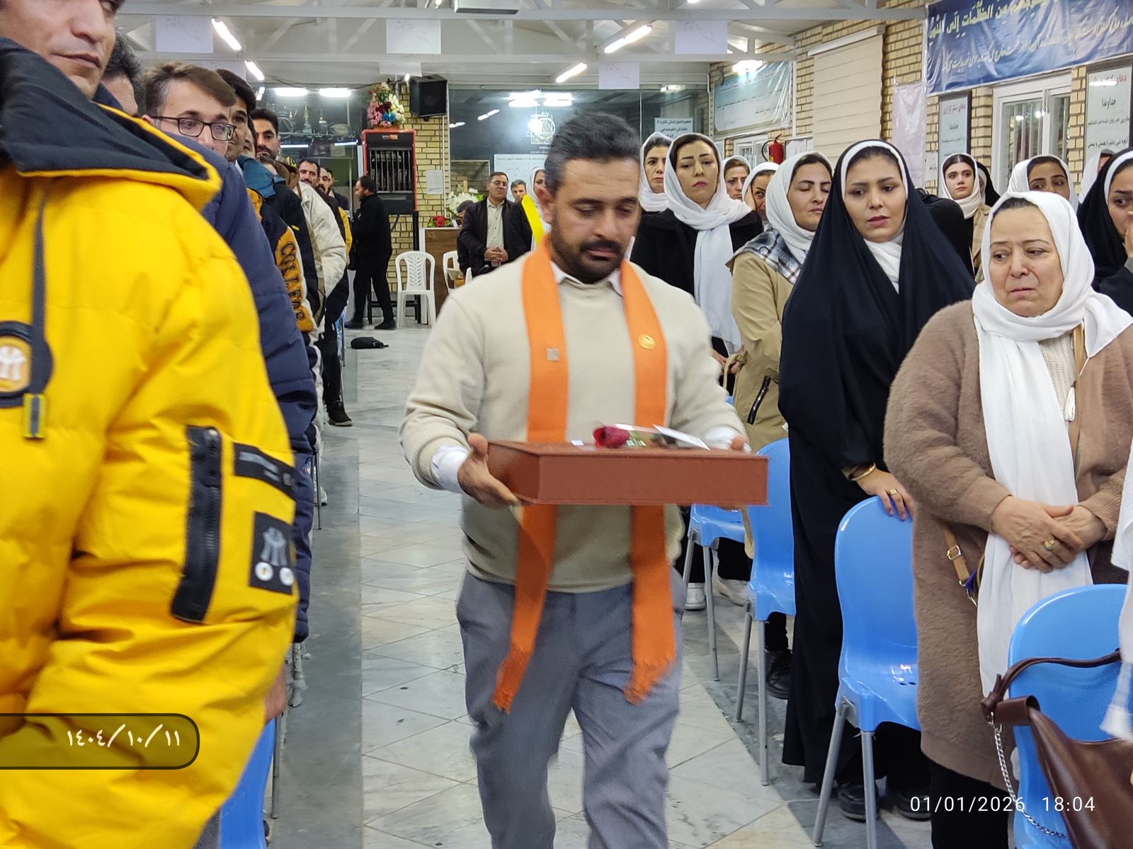 اهدای یک جلد قرآن نفیس لژیون سردار به نیابت از جناب مهندس به خانواده مرحوم مسافر کاظم مداح جهت اهدای یک قطعه زمین به کنگره 60