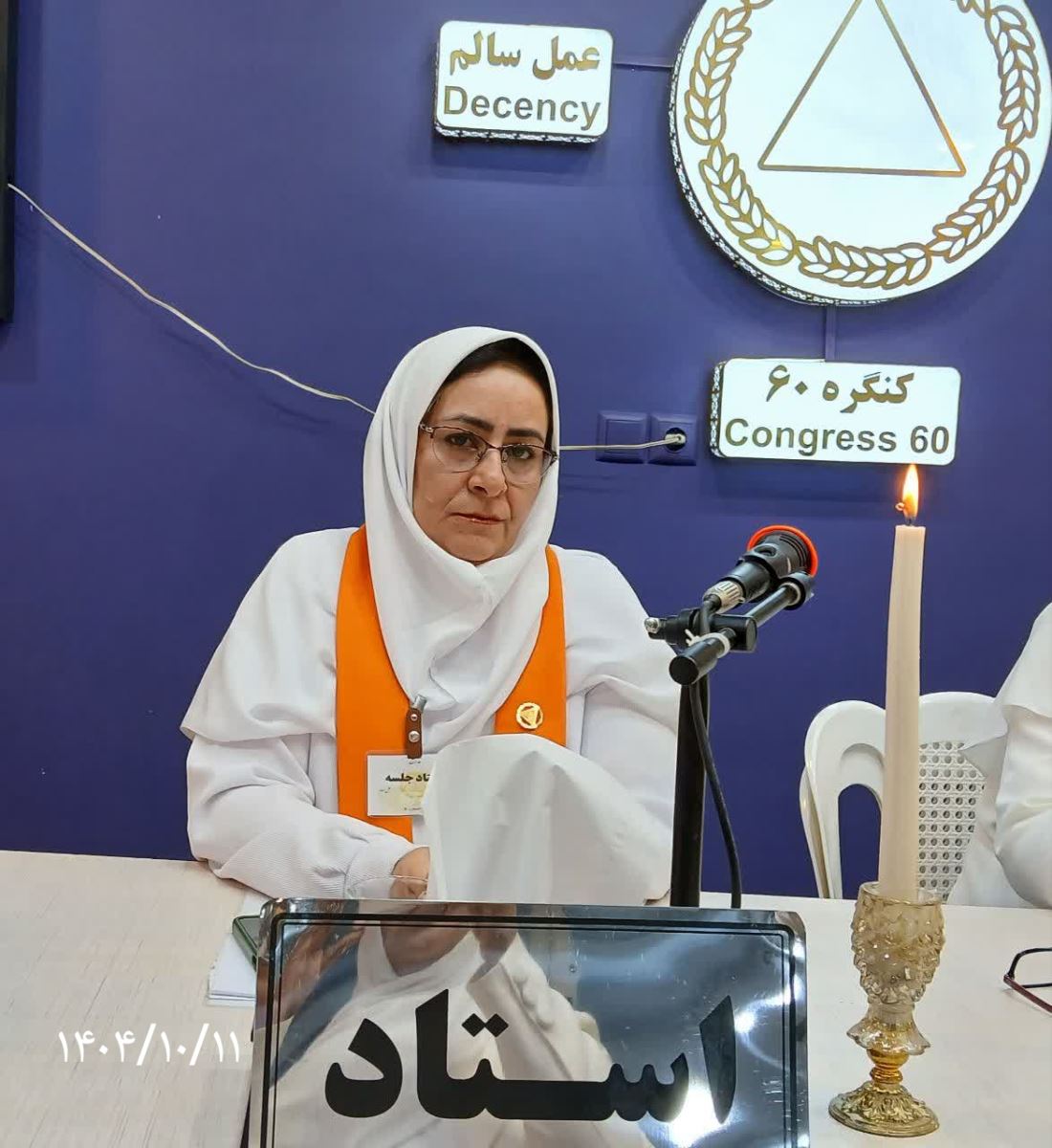 از دبیر، نگهبان جلسه و دوستانی که نوشتارها را قرائت کردند تشکر میکنم، از گروه مرزبانی و ایجنت نمایندگی سپاسگزارم که اجازه دادند من در این جایگاه باشم تا خدمت کنم و آموزش بگیرم. دستور جلسه در رابطه با هفته همسفر (نقش همسفران خانم و آقا در درمان اعتیاد مسافران.) ابتدا هفته همسفر را به اولین همسفر، خانم آنی بزرگ و خانواده محترمشان و همچنین به همسفران نمایندگی ساوه تبریک میگویم. ما در کنگره ۴ جشن داریم جشن هفته راهنما، جشن هفته مرزبان و ایجنت، جشن هفته دیدهبان و جشن هفته همسفر. این جشنها برای این است که من همسفر یا مسافر قدردانی را یاد بگیریم و آن چیزی را که اعتیاد باعث شده است از دست بدهیم را در کنگره به دست آوریم و به حال خوش برسبم. اگر من قدردانی را در کنگره یاد بگیرم و عملی کنم حتماً بیرون از کنگره هم انجام میدهم.