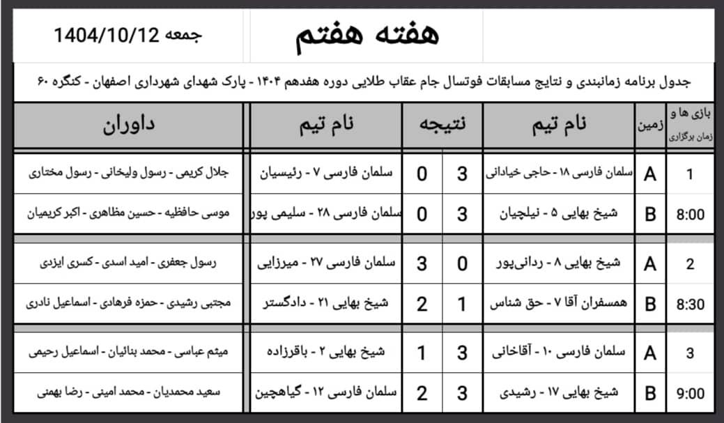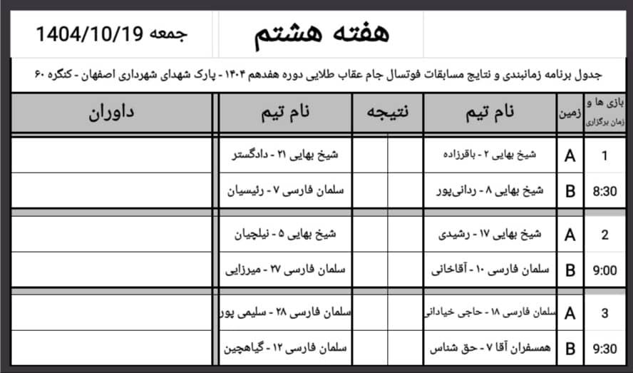 تربیت بدنی نتایج هفته هفتم و برنامه هفته هشتم مسابقات فوتسال جام عقاب طلائی منبع: پارک شهدای شهرداری (اصفهان) سه شنبه 16 دي 1404 تعداد بازدید از این مطلب : 154 نتایج هفته هفتم برنامه هفته هشتم جدول امتیازات لیگ عکس های منتخب هفته ارسال مطلب : مسافر امیرحسین منبع: پارک شهدای شهرداری (اصفهان) سه شنبه 16 دي 1404 تعداد بازدید از این مطلب : 154 ویژه ها هشدار نایدا: وقفه در بروزرسانی و ارائه برخی از خدمات به دلیل وقفه در تأمین بودجۀ دولتی امریکا پذیرش مقاله مهندس حسین دژاکام برای ارائه در کنفرانس "مراقبت از اعصاب"،شیکاگو، امریکا (2026) گامی سرنوشتساز از سوی مهندس حسین دژاکام در درمان کووید-۱۹ و سارس ارائه مقاله جدید و برجسته مهندس حسین دژاکام در حوزه درمان اعتیاد با روش DST با دقت سلولی مولکولی در کنفرانس بین المللی درمان اعتیاد در اورلاندو، فلوری مقاله "تأثیرات رفتاری و مولکولی پروتکل دی اس تی بر مدل حیوانی اعتیاد به تریاک" از مهندس حسین دژاکام، درصدر محافل علمی دنیا مورد بررسی و پذیرش قرار گر دستاورد شگفتآور دیگری از تیم تحقیقاتی کنگره 60 در ریسرچ گیت منتشر گردید. دستاورد شگفت آور دیگری از کنگره 60، انتشار مقاله مهار متاستاز سرطان سینه به صورت short communication رویکردی نوین در درمان سرطان