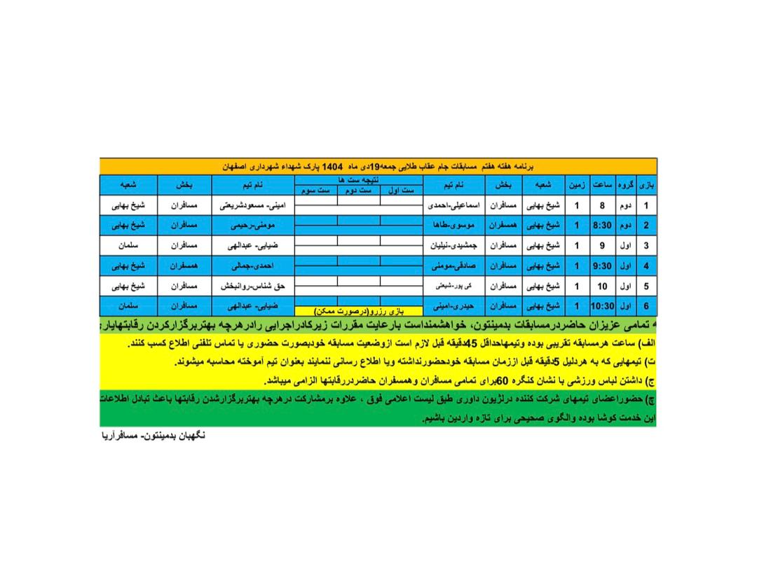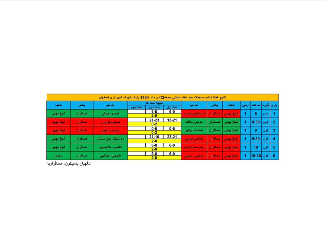 تربیت بدنی جدول برنامه هفته هفتم مسابقات بدمینتون و گروه بندی هفدهمین دوره مسابقات عقاب طلایی بدمینتون منبع: پارک شهدای شهرداری (اصفهان) سه شنبه 16 دي 1404 تعداد بازدید از این مطلب : 92 گروه اول گروه دوم نتیجه مسابقات در هفته ششم برنامه هفته هفتم ارسال مطلب : مسافر امیرحسین منبع: پارک شهدای شهرداری (اصفهان) سه شنبه 16 دي 1404 تعداد بازدید از این مطلب : 92 ویژه ها هشدار نایدا: وقفه در بروزرسانی و ارائه برخی از خدمات به دلیل وقفه در تأمین بودجۀ دولتی امریکا پذیرش مقاله مهندس حسین دژاکام برای ارائه در کنفرانس "مراقبت از اعصاب"،شیکاگو، امریکا (2026) گامی سرنوشتساز از سوی مهندس حسین دژاکام در درمان کووید-۱۹ و سارس ارائه مقاله جدید و برجسته مهندس حسین دژاکام در حوزه درمان اعتیاد با روش DST با دقت سلولی مولکولی در کنفرانس بین المللی درمان اعتیاد در اورلاندو، فلوری مقاله "تأثیرات رفتاری و مولکولی پروتکل دی اس تی بر مدل حیوانی اعتیاد به تریاک" از مهندس حسین دژاکام، درصدر محافل علمی دنیا مورد بررسی و پذیرش قرار گر دستاورد شگفتآور دیگری از تیم تحقیقاتی کنگره 60 در ریسرچ گیت منتشر گردید. دستاورد شگفت آور دیگری از کنگره 60، انتشار مقاله مهار متاستاز سرطان سینه به صورت short communication رویکردی نوین در درمان سرطان