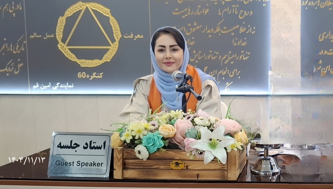 خداوند را شاکر و سپاسگزارم که بار دیگر توفیق حضور در کنار شما همسفران عشق را روزی من قرار داد. از ایجنت محترم، مرزبانان و راهنما خانم فاطمه تشکر میکنم که اجازه خدمت را به من دادند. امیدوارم که در کنار یکدیگر جلسه پرانرژی داشته باشیم. دستور جلسه «الهام از رمضان» میباشد. ماه رمضان در کنگره۶۰ شروع یک حرکت بزرگ است و این حرکت از زمانی آغاز شد که آقای مهندس تصمیم گرفتند به مقدار و زمان مصرف مواد خود نظم دهند و این نظم سبب شد که آقای مهندس روش DST را ابداع کردند و به برکت آن بسیاری از انسانها توانسنتد از بند اعتیاد، نیکوتین، اضافهوزن، بیماریها و ضدارزشها رها شوند. در واقع روش DST در ماه رمضان متولد شد.