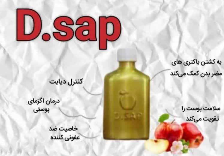 از فواید این ماده معجزهآسا که میتوان گفت، کمترین کار این ماده تقویت سیستم ایمنی بدن هست که این عمل به واسطه اسید استیک و اسید لاکتیک موجود و یا بواسطه داشتن انواع ویتامینهای B1،B2،B6 و بیوتین، اسیدفولیک، نیاسین، پتاسیم، کلسیم، پلی فنول و .... است. اکثر افراد فکر میکنند که D.Sap همان سرکه سیب خانگی هست، در صورتیکه فرایند تخمیر سرکه سیب تقریبا ۱ الی ۲ ماه هست ولی مدت زمان به عمل آمدن D.sap ده الی۱۱ ماه به طول میانجامد و آقای مهندس از سیبهای مرغوب این اکسیر را بدست میآورند.