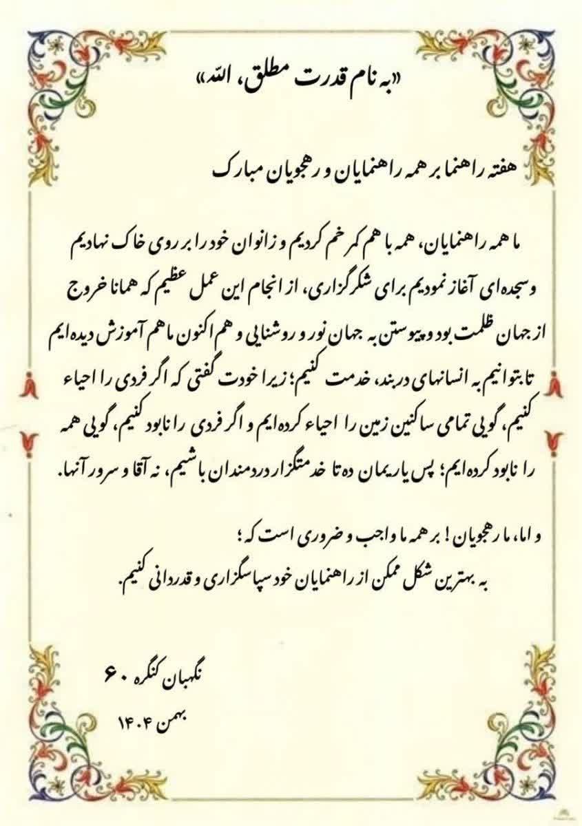 در این هفته پرشکوه، دلمان میخواهد از عمق جان بگوییم: خدا قوت راهنمایان توانا!