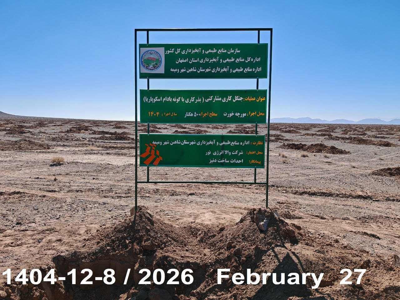 اردوی درختکاری با هدف بیابانزدایی و توسعه پوشش گیاهی، با استفاده از بذر درخت بادام اسکوپاریا، در روز جمعه مورخ ۱۴۰۴/۱۲/۰۸، با هماهنگی اداره کل منابع طبیعی استان اصفهان برگزار شد.