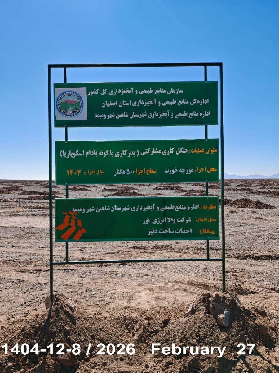 این اقدام در راستای مشارکت مردمی در طرحهای بیابانزدایی، کاهش ریزگردها، تثبیت خاک و توسعه فضای سبز با همکاری مؤثر جمعیت احیای انسانی کنگره ۶۰، اداره کل منابع طبیعی استان اصفهان و شرکت والا انرژی نور مجری نیروگاه خورشیدی انجام پذیرفت.