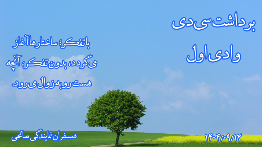 یادداشت احیاء کردن اصالت خویش 12 آذر همسفر زهرا در برداشت خود از وادی اول اینگونه بیان کرد: آنچه من نسبت به خودم تصور میکنم و حرف میزنم، تابلوی نقاشی زندگیام را به تصویر میکشد.