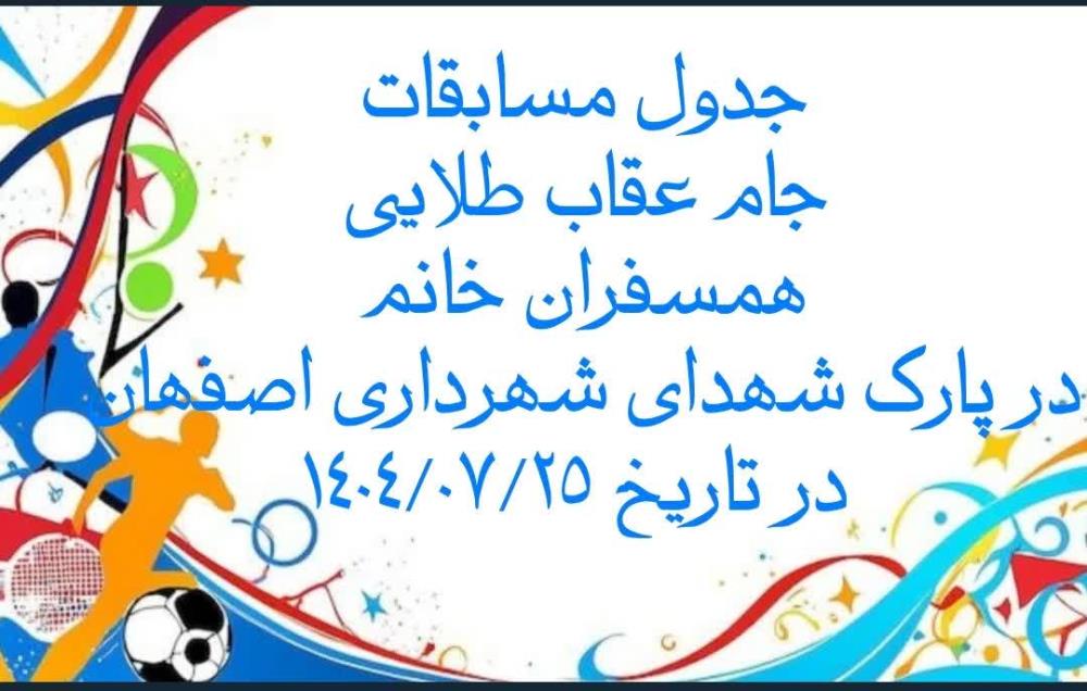 اخبار داخلی اسامی تیمهای شرکت کننده در مسابقات جام عقاب طلایی همسفران در پارک شهدای شهرداری اصفهان 25 مهر برنامه هفته چهارم مسابقات جام عقاب طلایی همسفران خانم در پارک شهدای شهرداری اصفهان در تاریخ 1404/07/25
