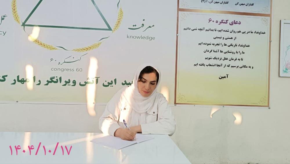 همسفر الهام در دلنوشته خود چنین نوشت: کمک من به کنگره حضور فعال مشارکت در جلسات یادگیری اصول زندگی و ماندن صادقانه است.
