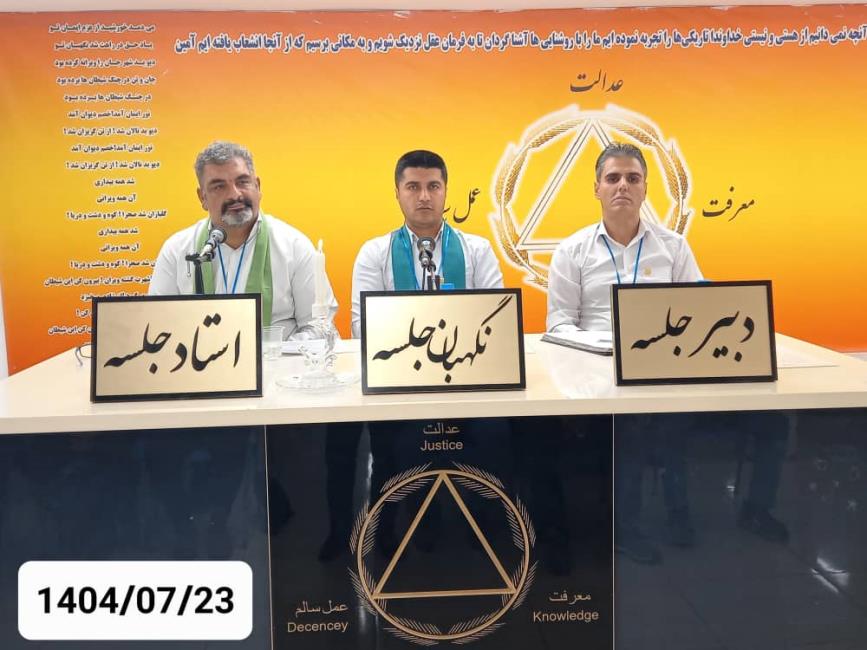 دستور جلسات هفتگي تکامل و سعادت از جهان بینی آغاز میشود 30 مهر با آموزش جهان بینی همه میتوانند از بدبختیها، گرفتاریها و تاریکیها نجات پیدا کنند و به صلح و آرامش برسند.