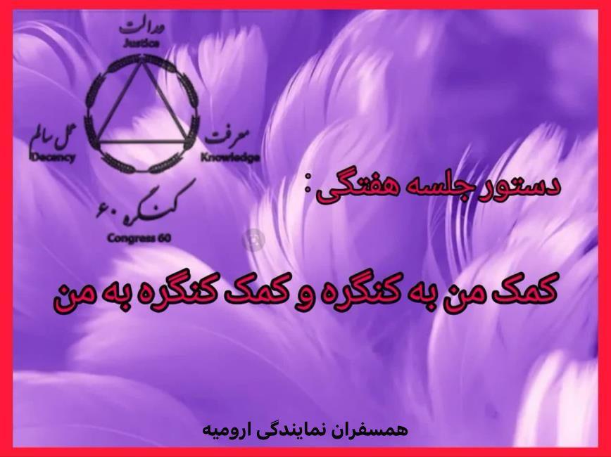 کارگاه های آموزشی کنگره 60 گروهخانواده_اعتیاد فقط مواد مخدر نیست 15 بهمن مرزبان همسفر افسانه در مورد دستور جلسه گفتند:در ماه رمضان درمان تدریجی آقای مهندس از هر جنبه نمایان شده است.