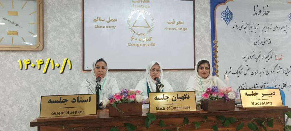 کارگاه های آموزشی کنگره 60 آموزشپذیری همسفر کلید طلایی درمان مسافر 8 دي راهنما همسفر مهری در مورد دستور جلسه بیان کرد: ناامیدی زمانی رنگ میبازد که من ایمان کامل به روش درمان و ساختار کنگره۶۰ داشته باشم.